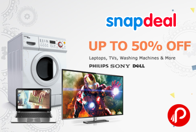 Snapdeal is offering Upto 50% off on Philips, Sony, Dell Laptops, TVs, Washing Machines.
