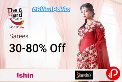 Flipkart #BikulPakka brings The 6 Yard Sale and offering Upto 30-80% on Saress with many brands like Ishin, Pavechas, Mimosa, MSRetail, Chirag.